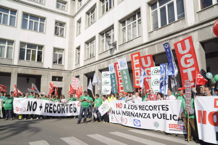 «Hay centros que van a perder hasta catorce puestos de trabajo», alertan los sindicatosMás de 2.000 personas reclaman en la calle al Principado que defienda la escuela pública