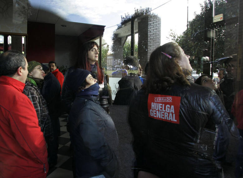 Conseguidos estos, la mañana comenzó con escaso movimiento en toda la ciudad y en las principales poblaciones de Castrillón y Corvera. Poquísima gente en la calle, zonas de aparcamiento prácticamente vacías y alguna cafetería abierta que suponía la excepción, junto con dos despachos de pan, uno el de El Atrio y otro en El Quirinal, además de numerosas entidades bancarias, que optaron desde un principio de operar a media luz y con las persianas echadas. A última hora, se denunció el destrozo de dos cajeros automáticos de la calle de Las Artes. A las nueve de la mañana, una Plaza de España absolutamente vacía, con todas las terrazas recogidas y las puertas del Ayuntamiento semicerradas eran el mejor exponente de una huelga general que, en palabras de un importante comerciante de la ciudad, con cargo representativo en una entidad de servicios, y que por razones obvias prefirió mantener su anonimato, «por primera vez una huelga ha unido a los trabajadores y a los empresarios, al menos a los comerciantes, porque lo que está pasando y las medidas que se están adoptando nos están afectando a todos de una forma dramática».
